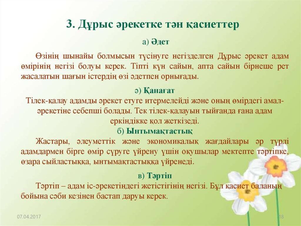 Дұрыс әрекет - өмір негізі