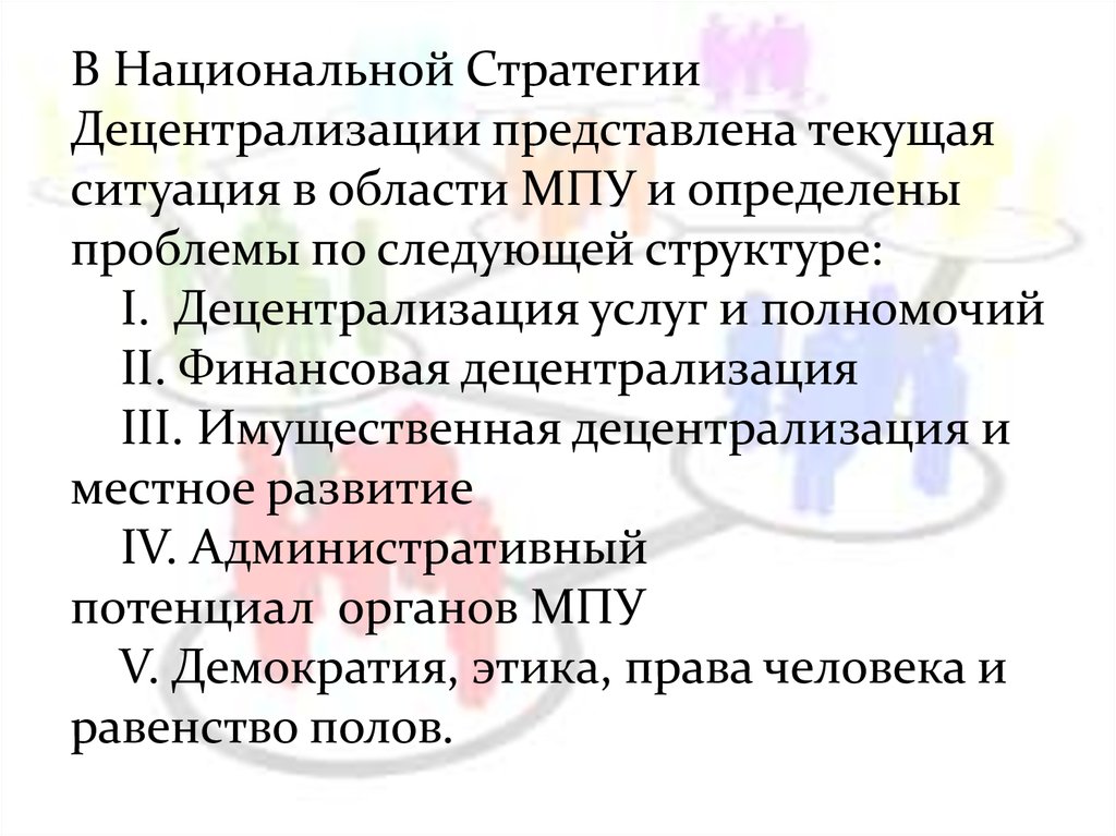 НАЦИОНАЛЬНАЯ СТРАТЕГИЯ ДЕЦЕНТРАЛИЗАЦИИявляется основным программным документом в сфере местного