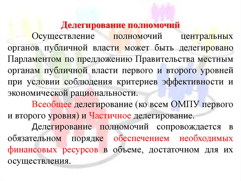 •Принцип полноты полномочий, предусматривающего, чтолюбые полномочия, предоставляемые местным органам