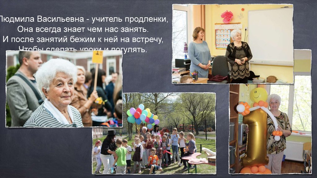 Людмила Васильевна - учитель продленки,Она всегда знает чем нас занять.