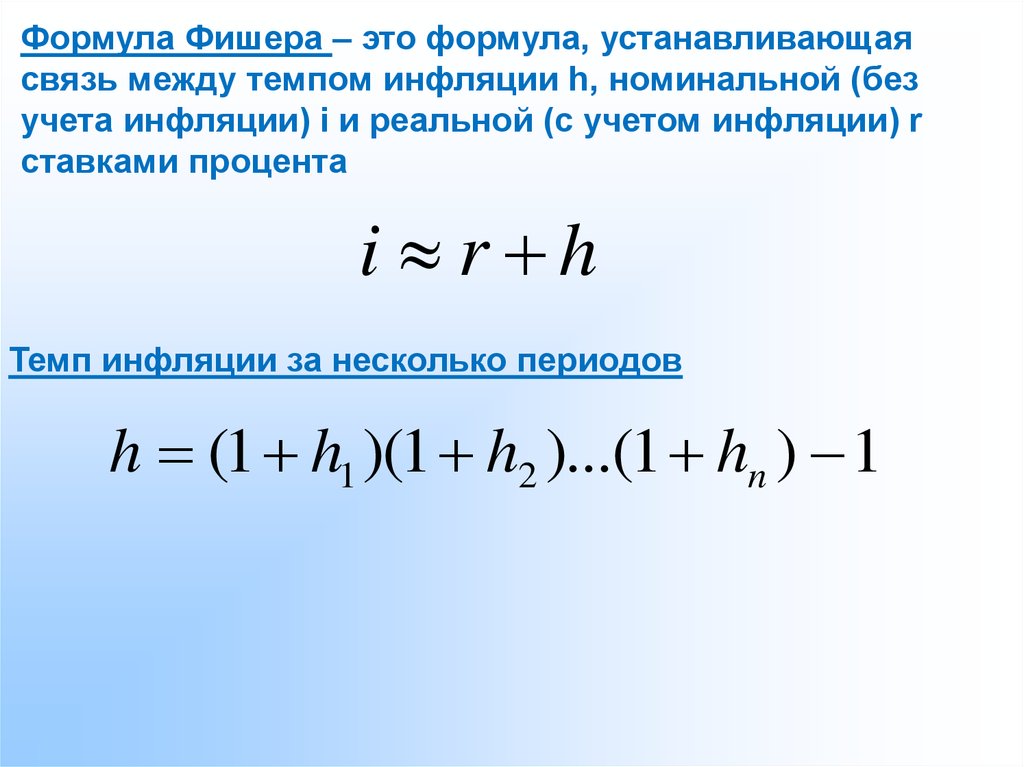 Формула Фишера – это формула, устанавливающаясвязь между темпом инфляции h, номинальной (без