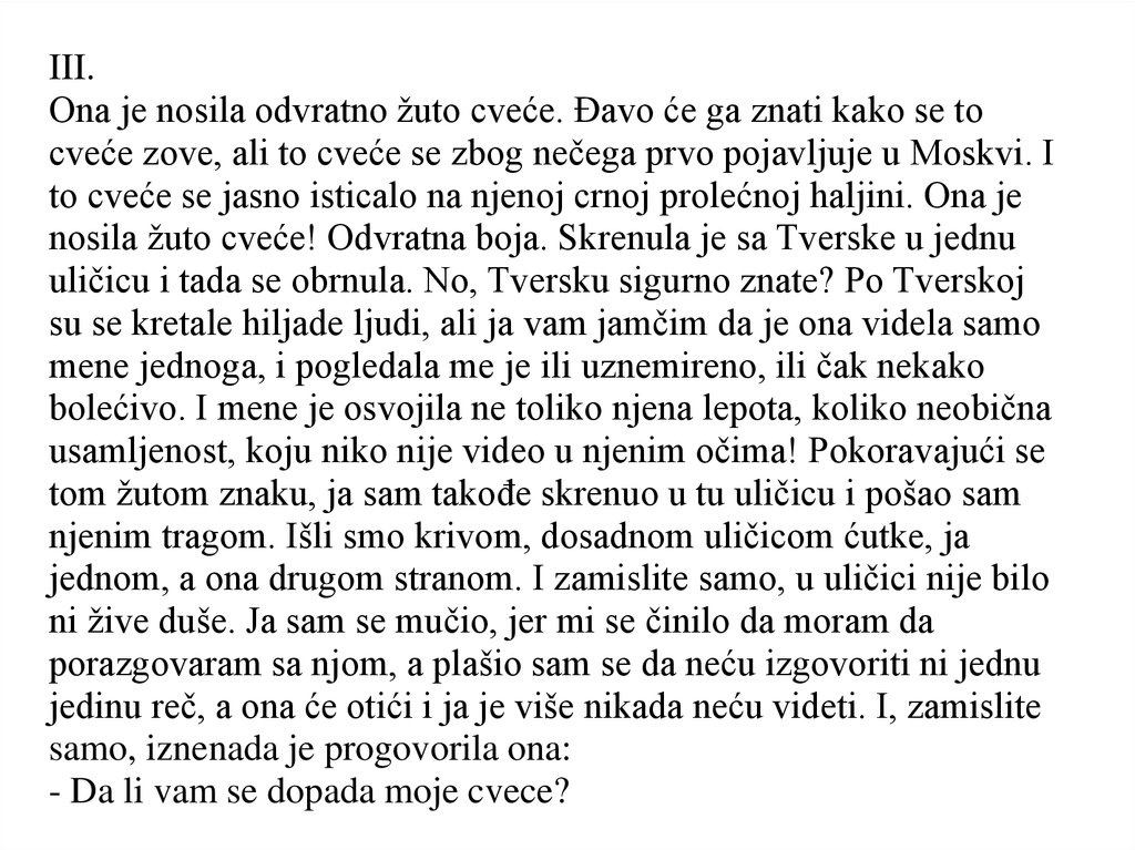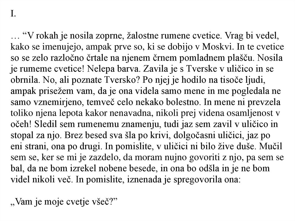 I.… “V rokah je nosila zoprne, žalostne rumene cvetice. Vrag bi vedel,