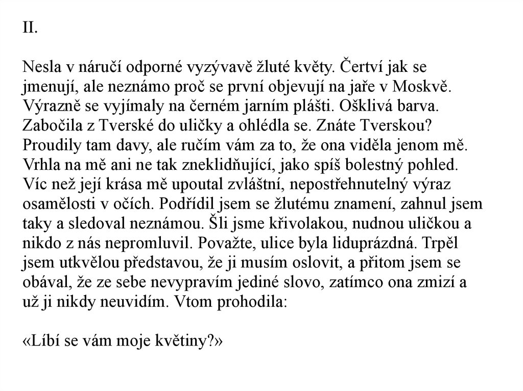 II.Nesla v náručí odporné vyzývavě žluté květy. Čertví jak se