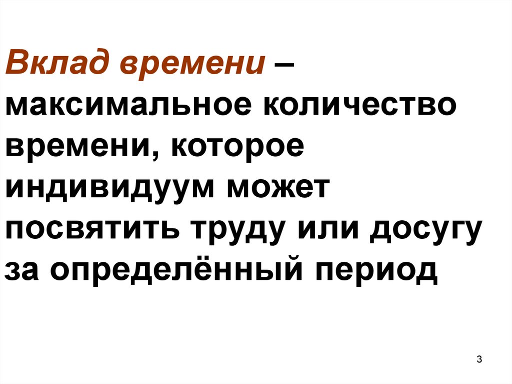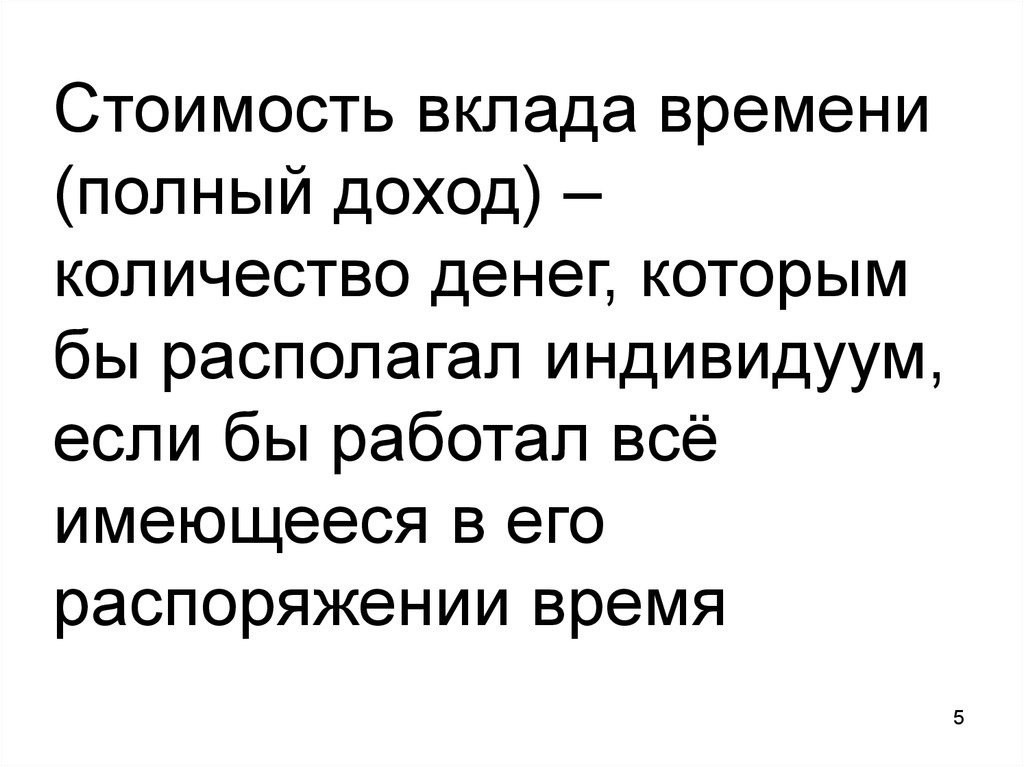 Стоимость вклада времени(полный доход) –