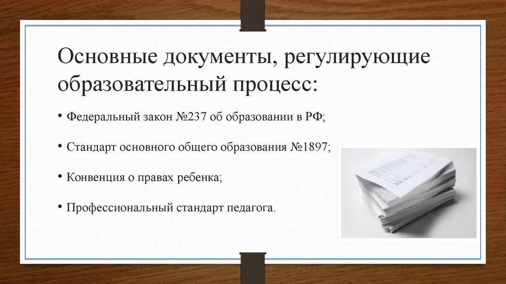 • Федеральный закон №237 об образовании в РФ;