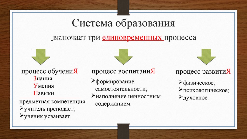 Система образованиявключает три единовременных процесса