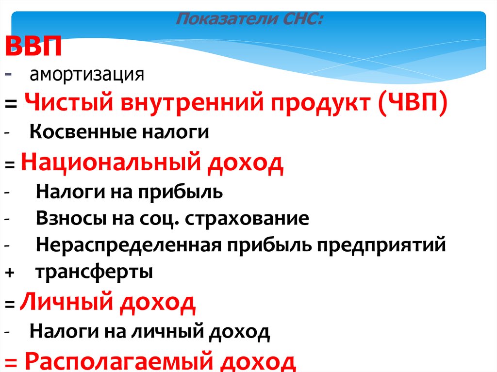 ВВППоказатели СНС: