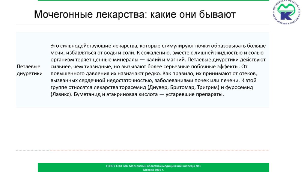 Мочегонные лекарства: какие они бываютПетлевые