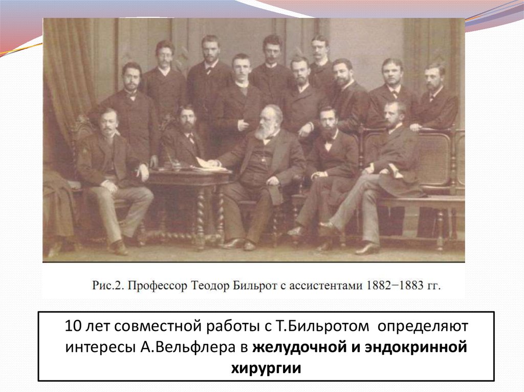10 лет совместной работы с Т.Бильротом определяютинтересы А.Вельфлера в желудочной и эндокринной