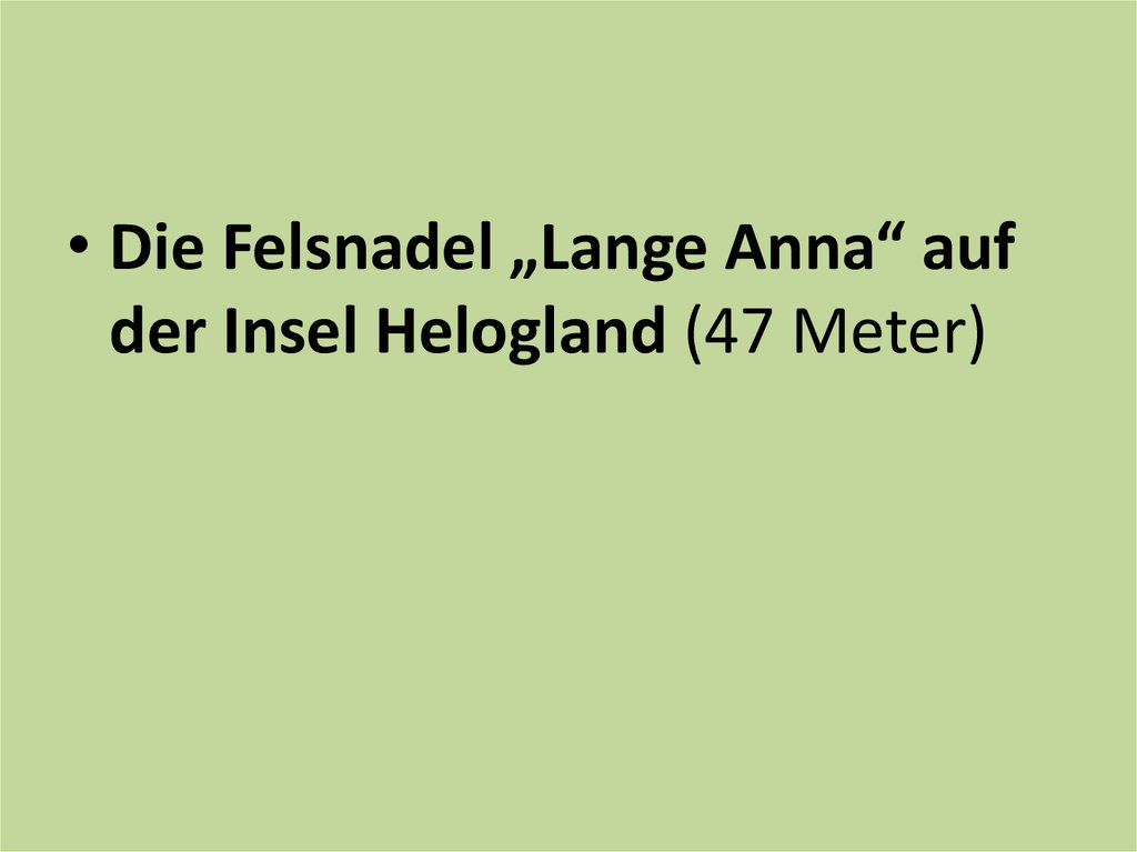 • Die Felsnadel „Lange Anna“ aufder Insel Helogland (47 Meter)