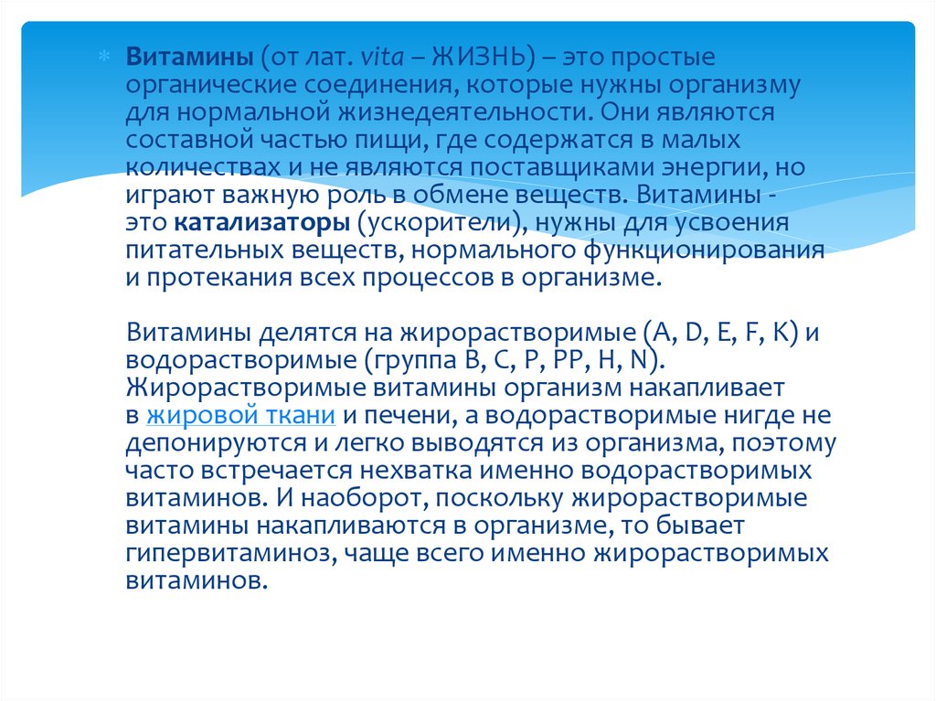 Витамины (от лат. vita – ЖИЗНЬ) – это простыеорганические соединения, которые нужны организму