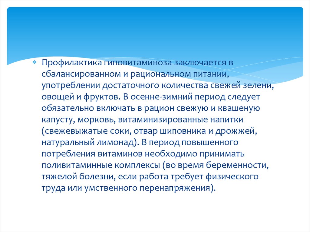 Профилактика гиповитаминоза заключается всбалансированном и рациональном питании,