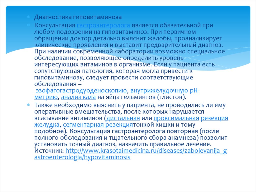 Диагностика гиповитаминозаКонсультация гастроэнтеролога является обязательной при