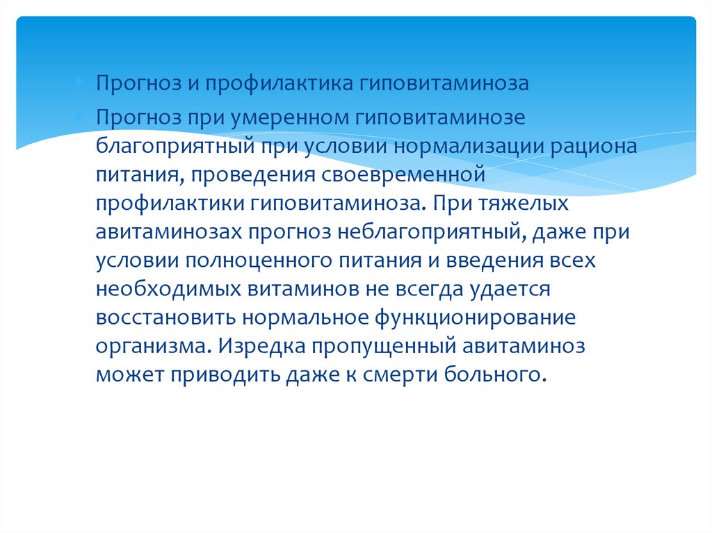 Прогноз и профилактика гиповитаминозаПрогноз при умеренном гиповитаминозе