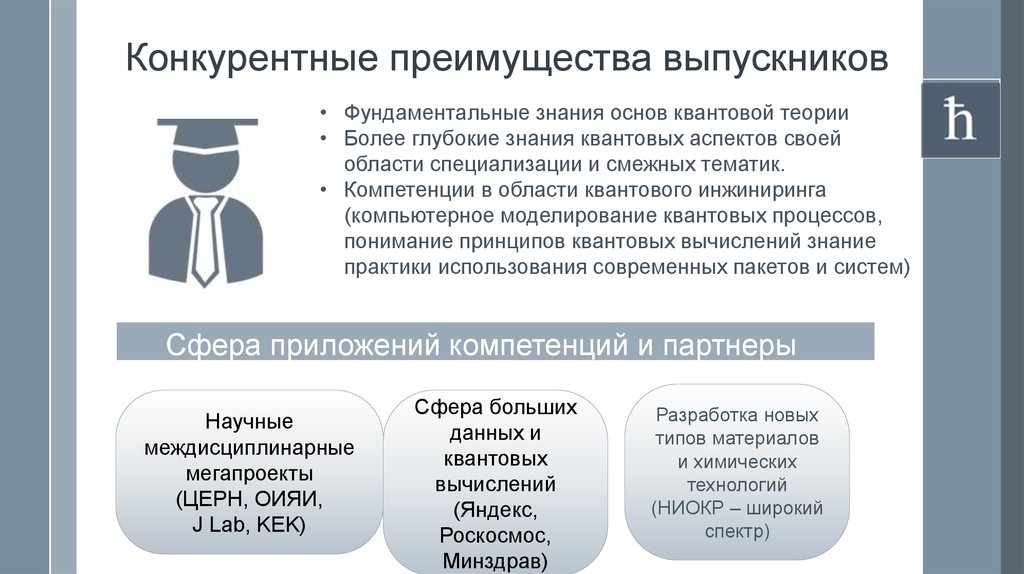 Конкурентные преимущества выпускников• Фундаментальные знания основ квантовой теории