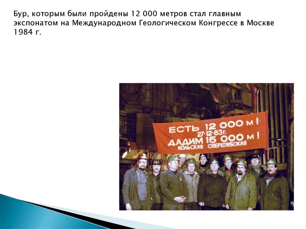 В 1983 году пробурили 12 066 метров и временно остановились —готовились к Международному геологическому конгрессу, который