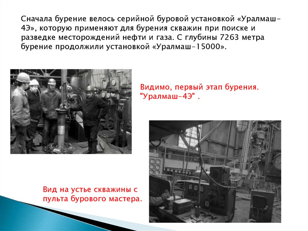 собственно бурение. До глубины в 7 000 метров бурение проходило