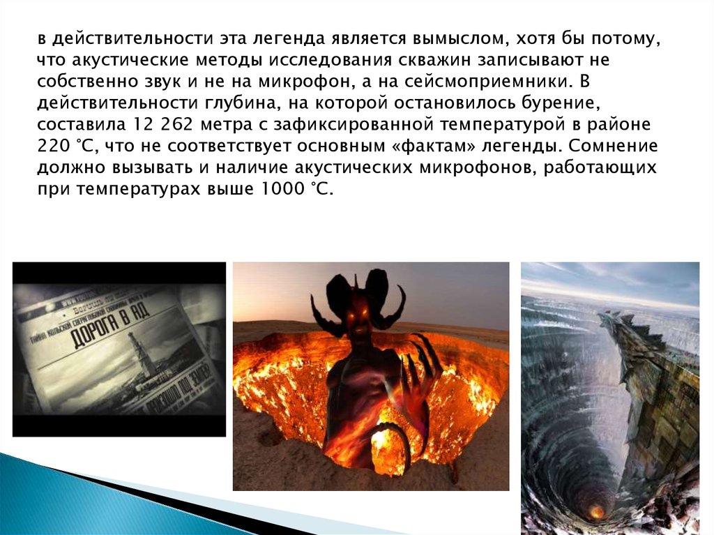 в действительности эта легенда является вымыслом, хотя бы потому,что акустические методы исследования скважин записывают не
