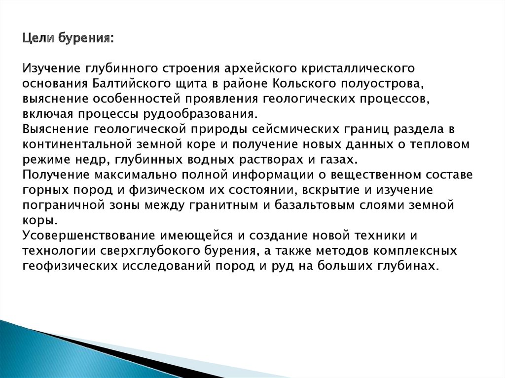 Цели бурения:Изучение глубинного строения архейского кристаллического