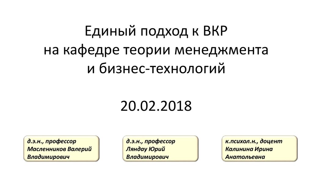 Единый подход к ВКРна кафедре теории менеджмента