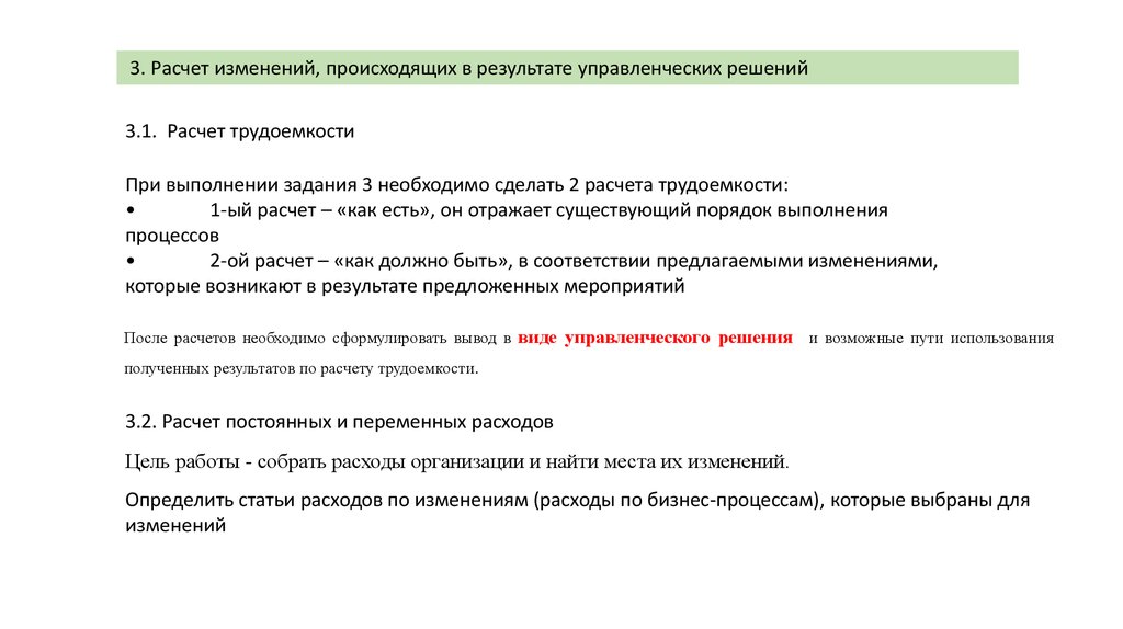 3. Расчет изменений, происходящих в результате управленческих решений3.1. Расчет трудоемкости