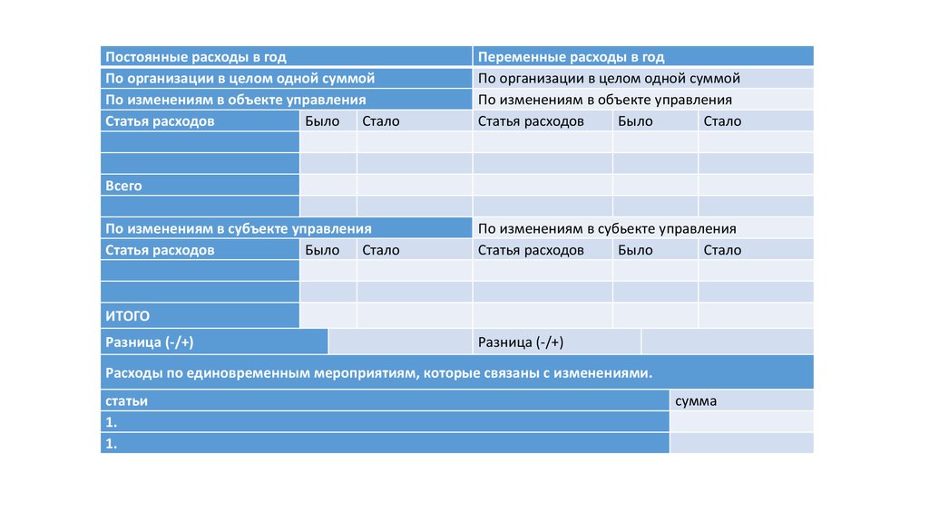 Расходы по единовременным мероприятиям, которые связаны с изменениями.