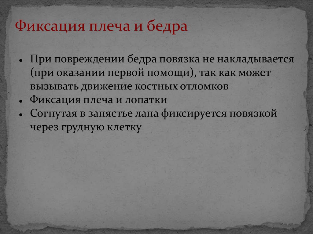 Фиксация плеча и бедраПри повреждении бедра повязка не накладывается