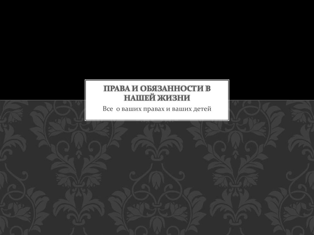 ПРАВА И ОБЯЗАННОСТИ ВНАШЕЙ ЖИЗНИ