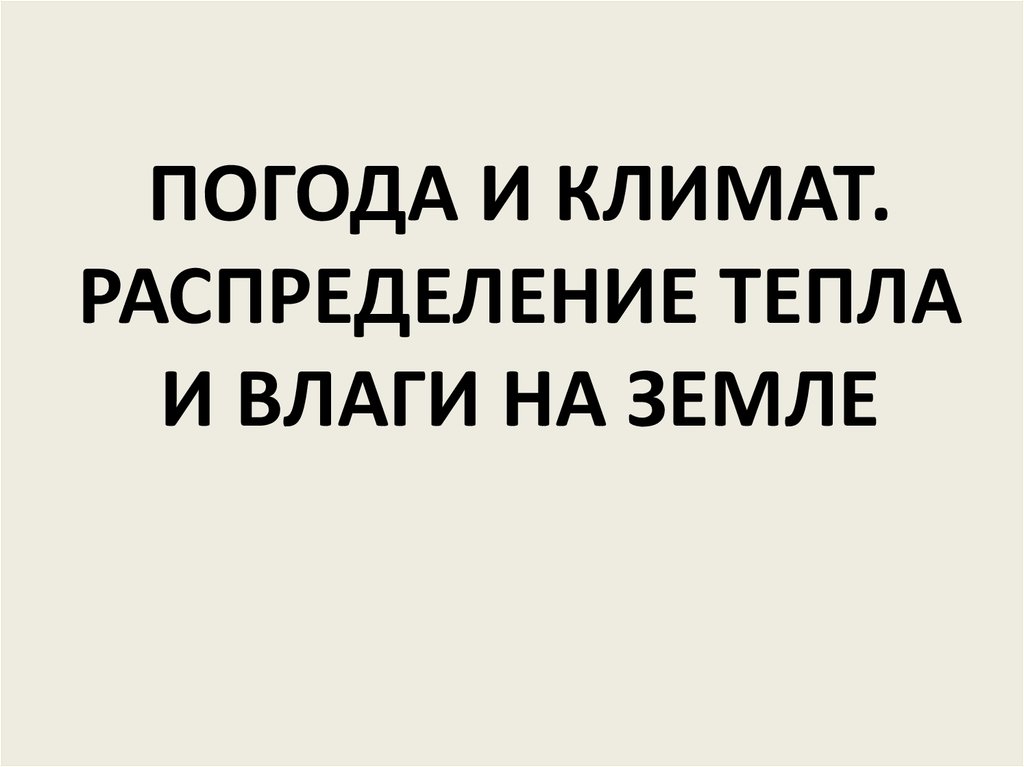 ПОГОДА И КЛИМАТ.РАСПРЕДЕЛЕНИЕ ТЕПЛА