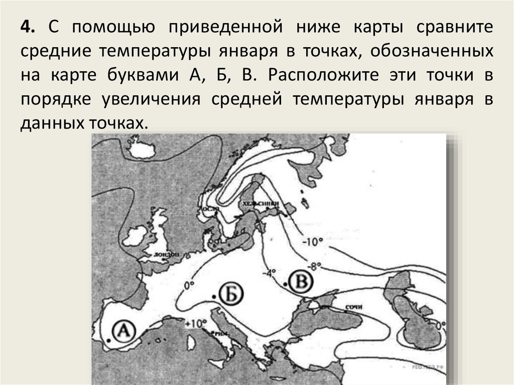 4. С помощью приведенной ниже карты сравнитесредние температуры января в точках, обозначенных