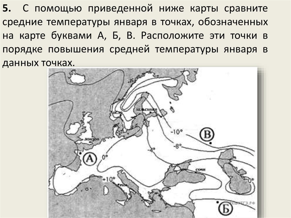 5. С помощью приведенной ниже карты сравнитесредние температуры января в точках, обозначенных