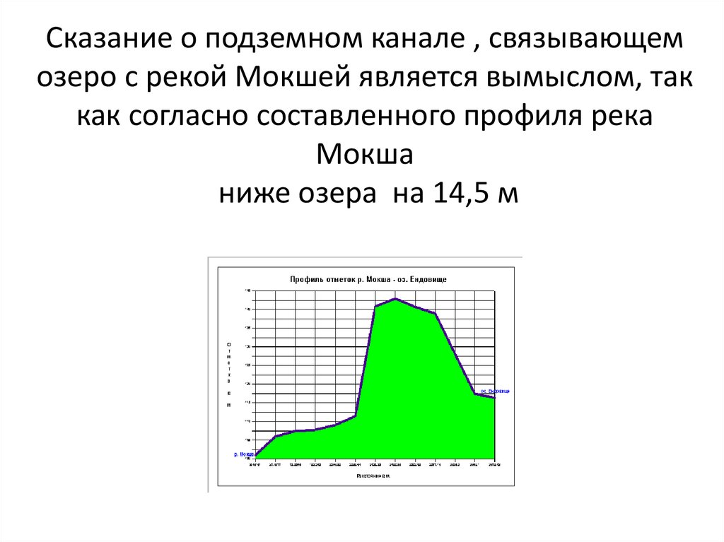 Сказание о подземном канале , связывающемозеро с рекой Мокшей является вымыслом, так