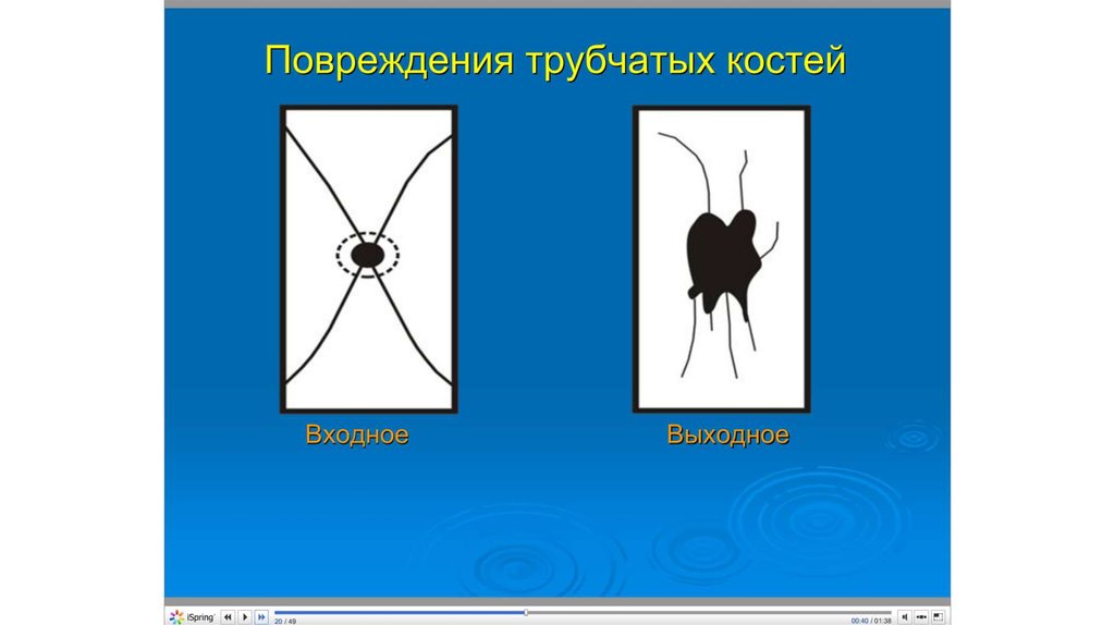 межкостными швами. При первом выстреле такая картина объясняется преобладанием прогиба всей костной