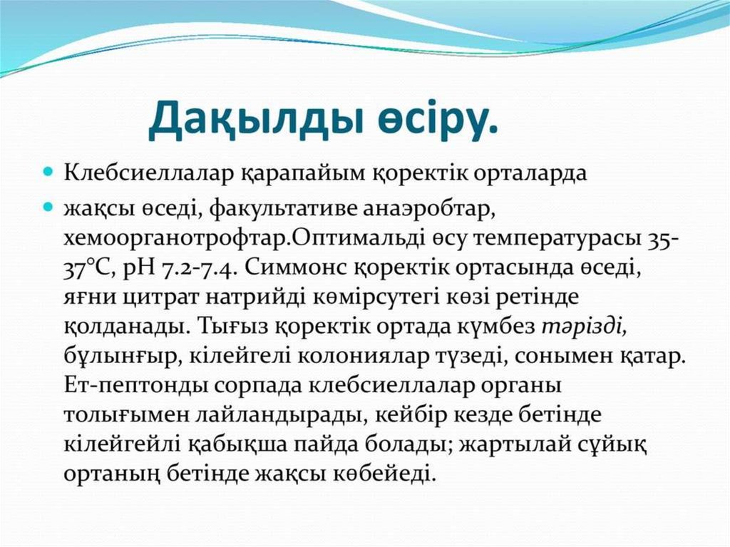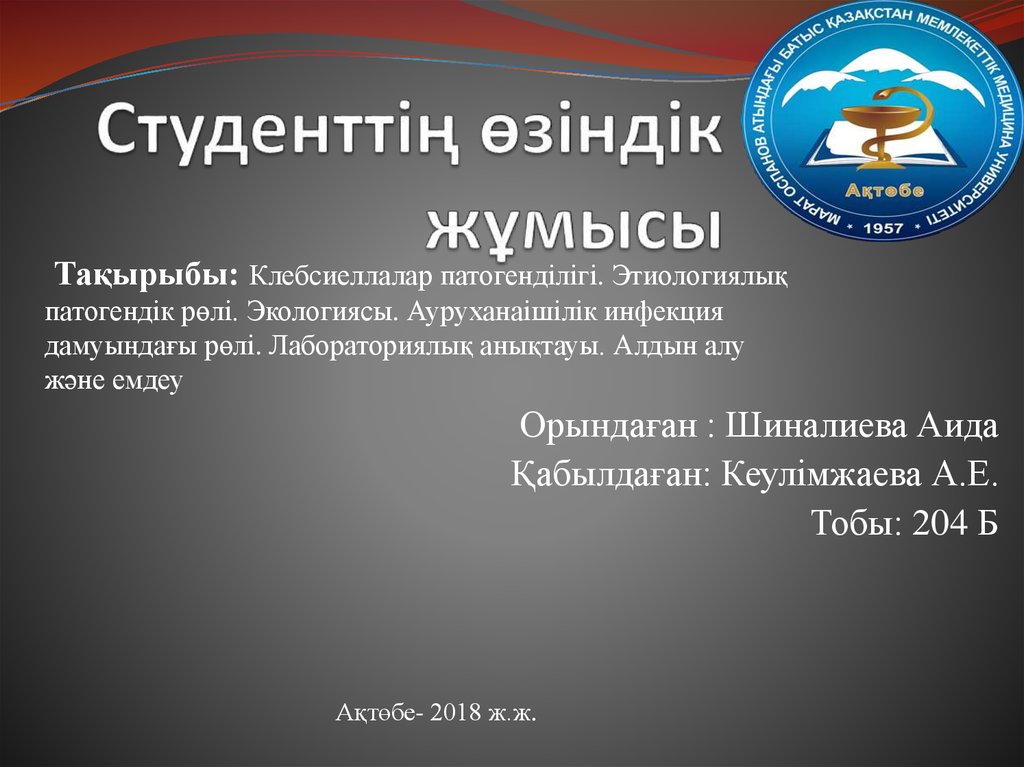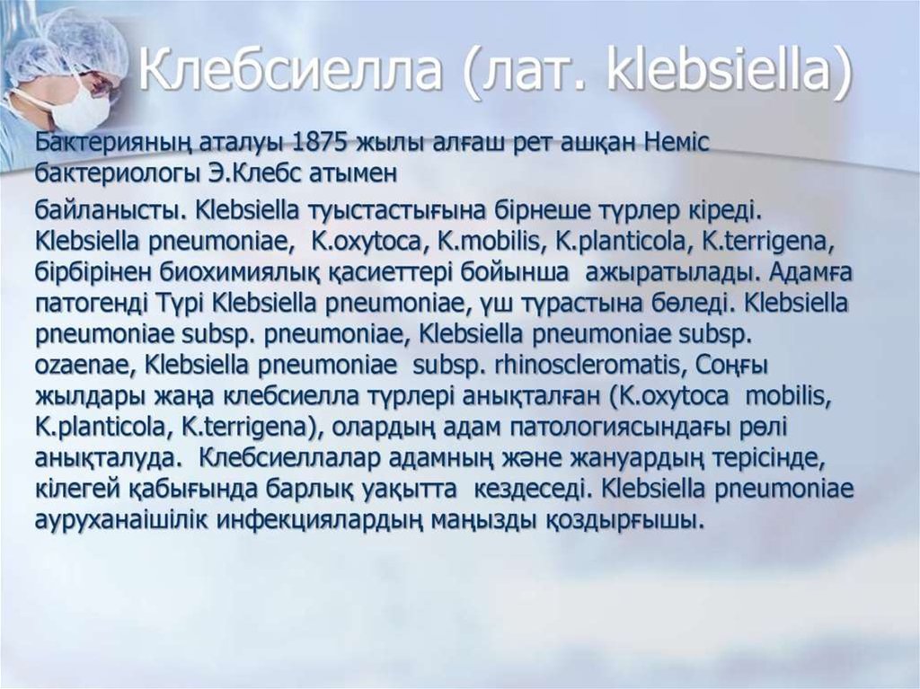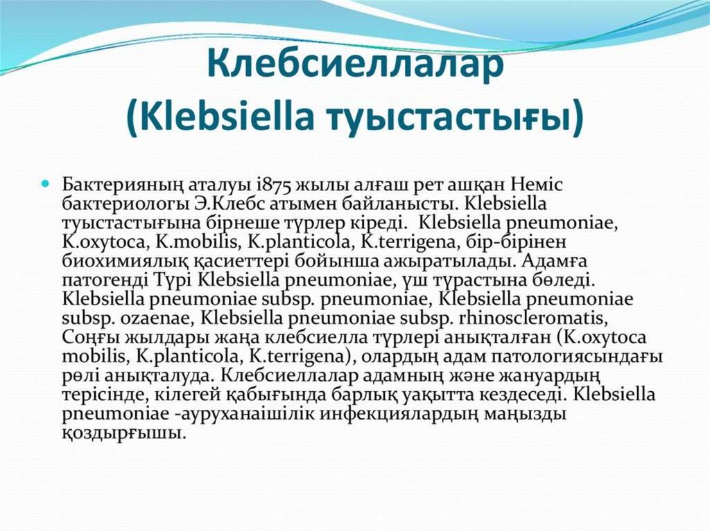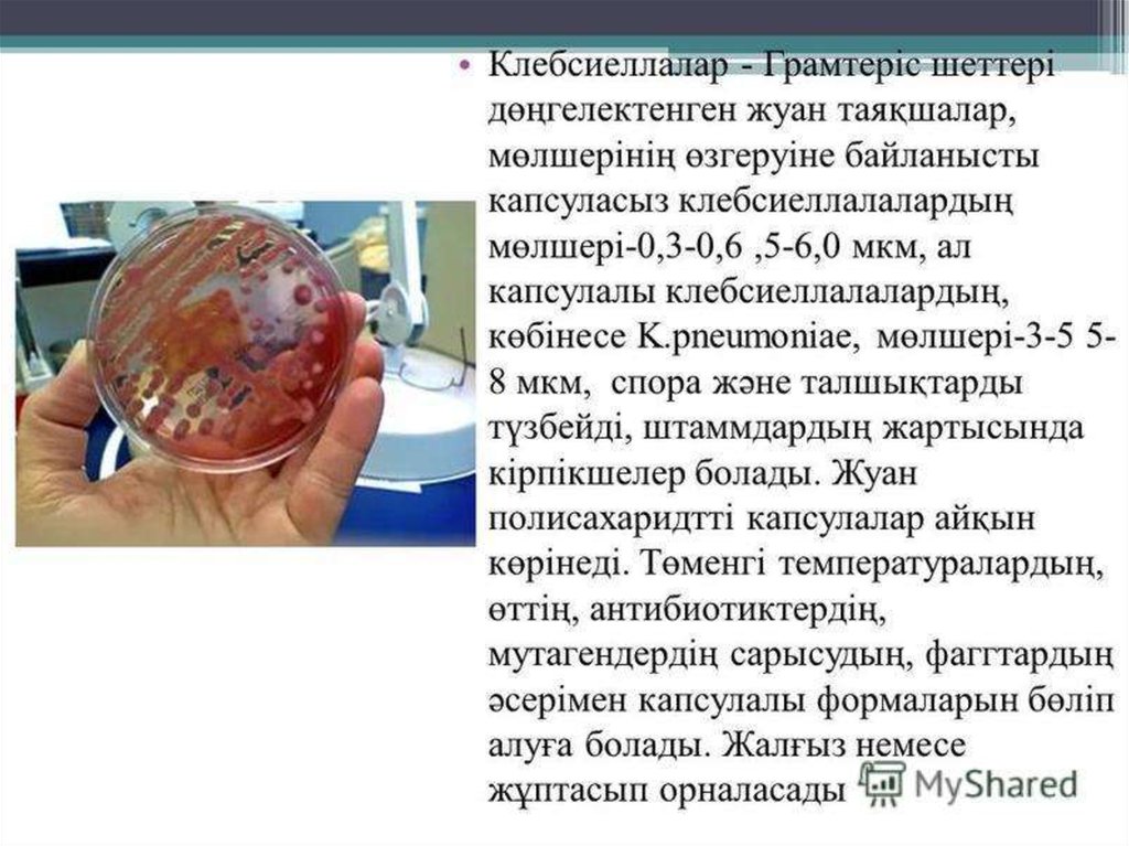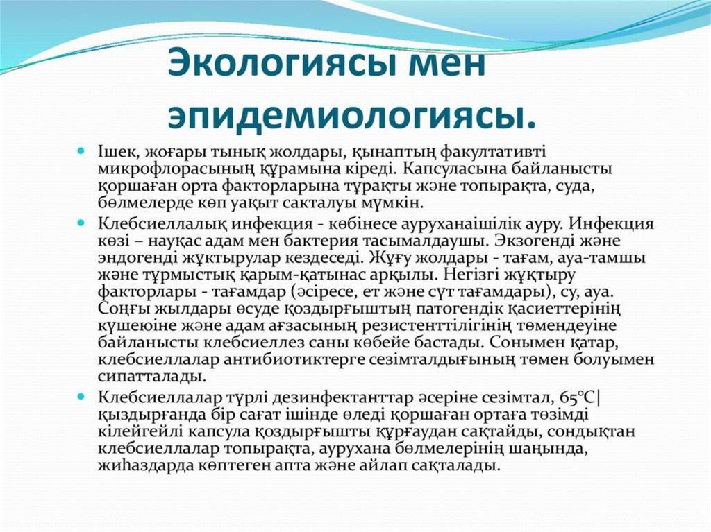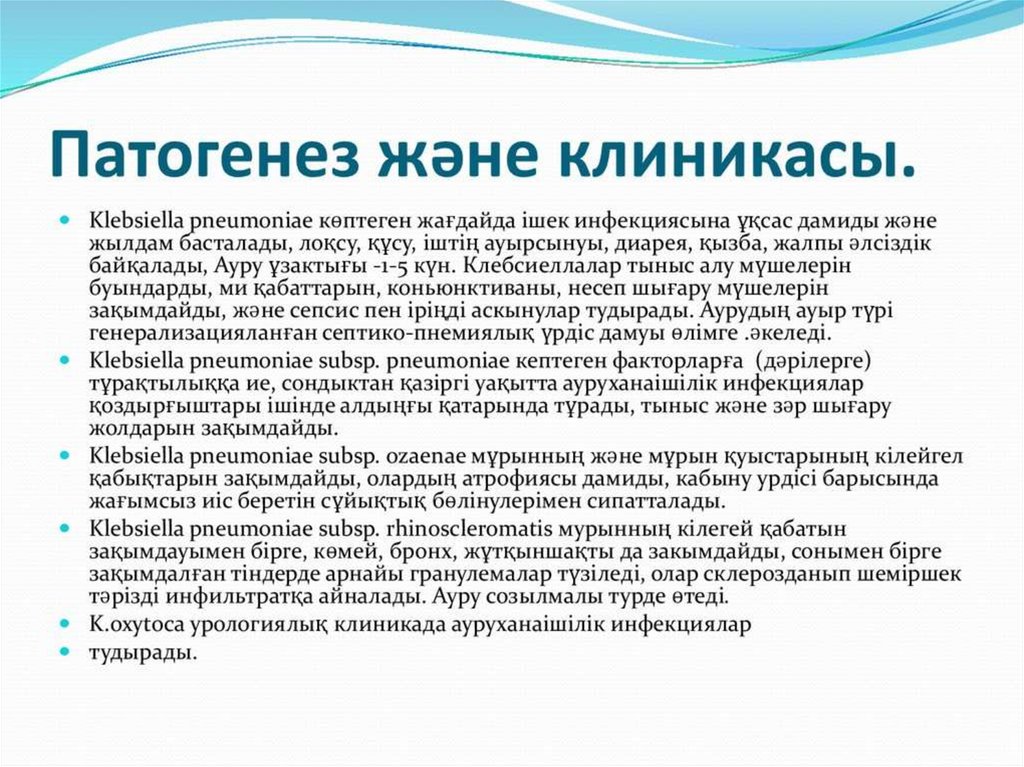 Тақырыбы: Клебсиеллалар патогенділігі. Этиологиялықпатогендік рөлі. Экологиясы. Ауруханаішілік инфекция