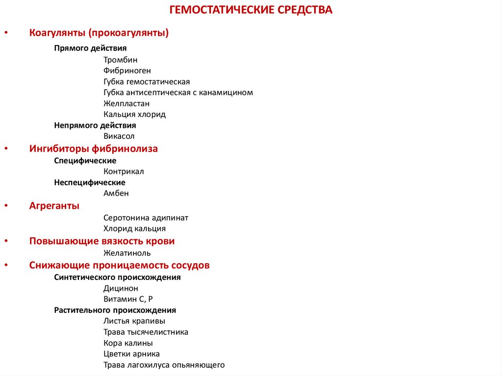 ГЕМОСТАТИЧЕСКИЕ СРЕДСТВАКоагулянты (прокоагулянты)