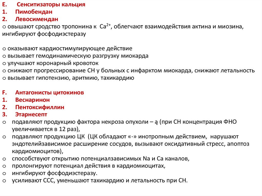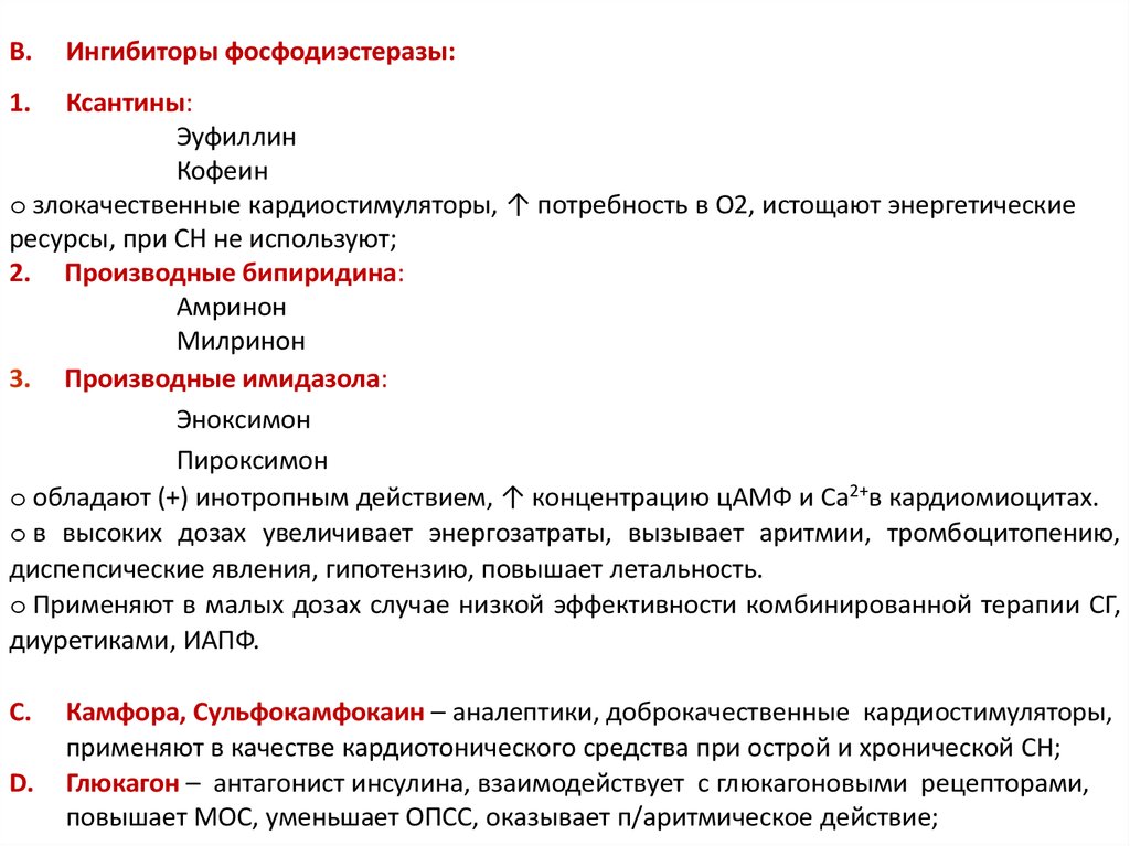 o обладают (+) инотропным действием, ↑ концентрацию цАМФ и Са2+в кардиомиоцитах.