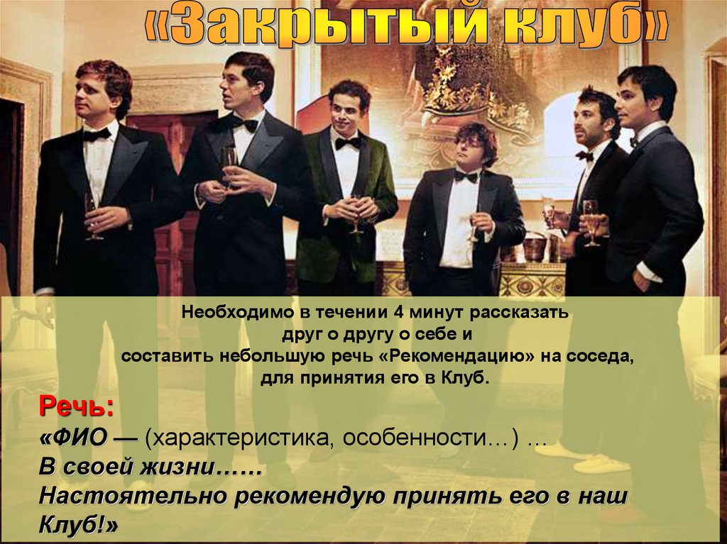 Необходимо в течении 4 минут рассказатьдруг о другу о себе и