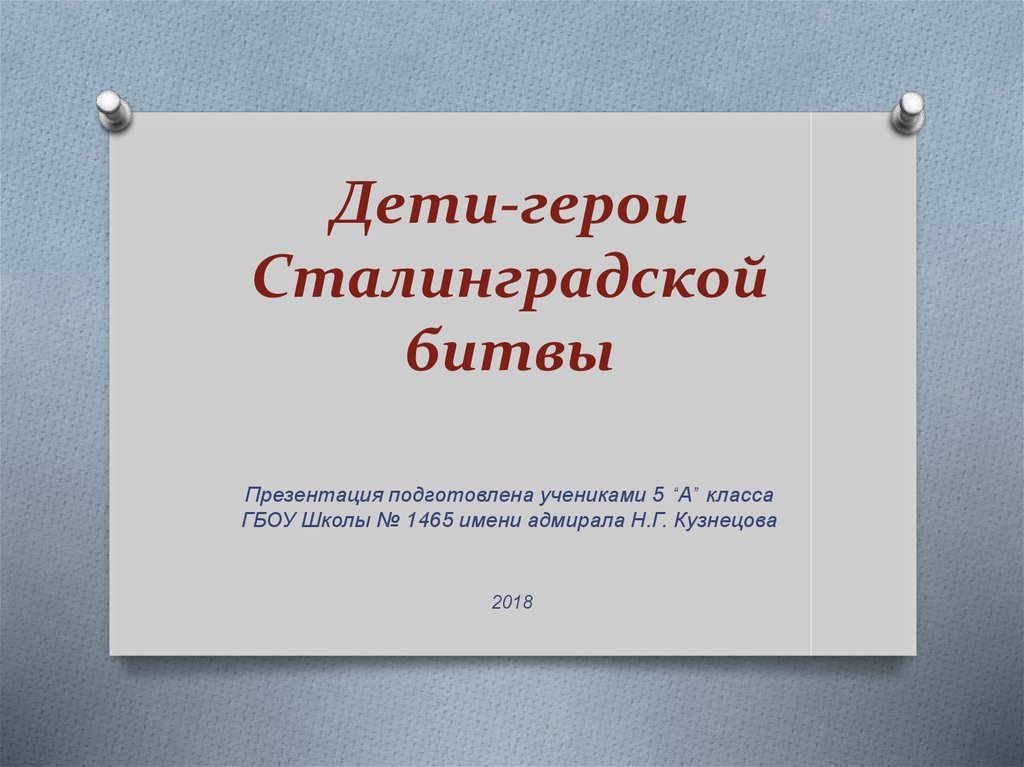 1. Дети-герои Сталинградской битвы