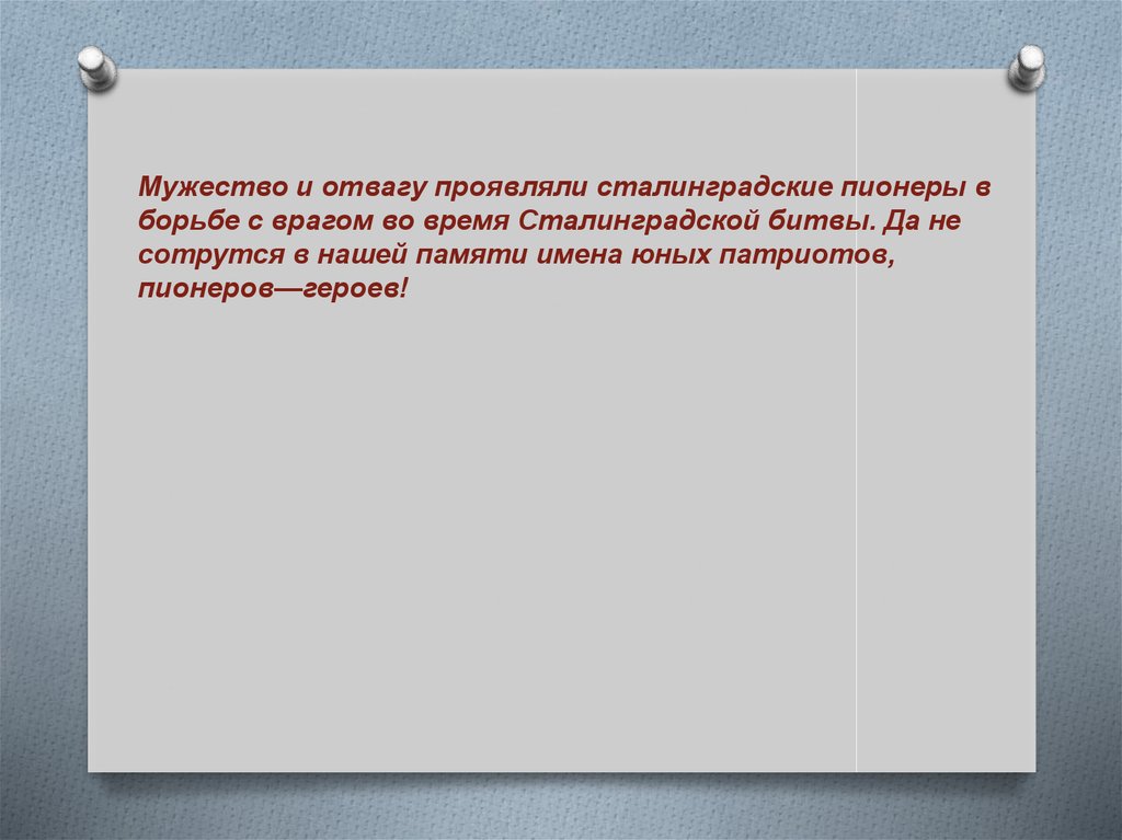 Мужество и отвагу проявляли сталинградские пионеры вборьбе с врагом во время Сталинградской битвы. Да не