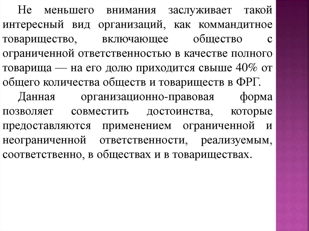 Не меньшего внимания заслуживает такойинтересный вид организаций, как коммандитное