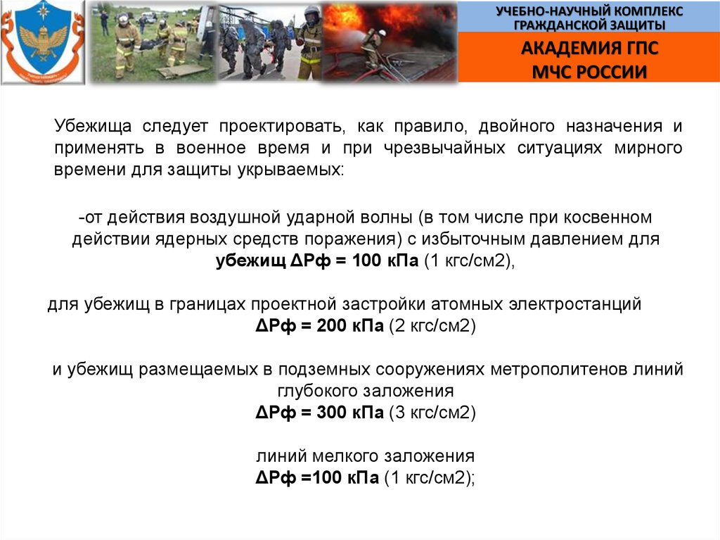 убежищ ΔРф = 100 кПа (1 кгс/см2),