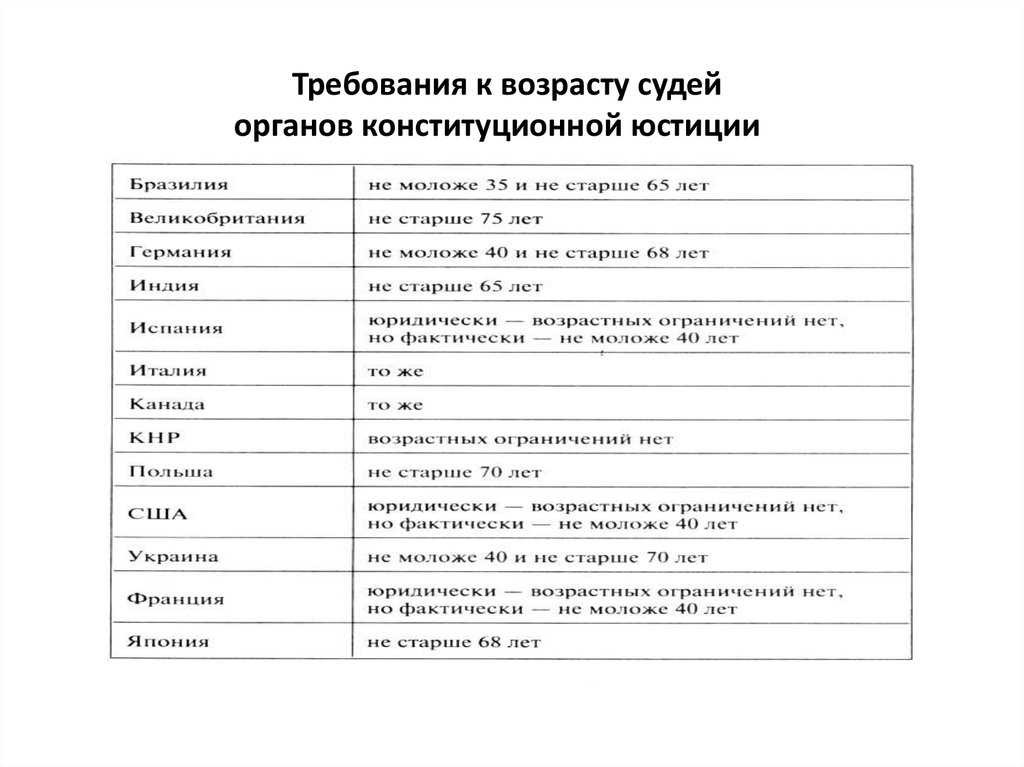 Требования к возрасту судейорганов конституционной юстиции