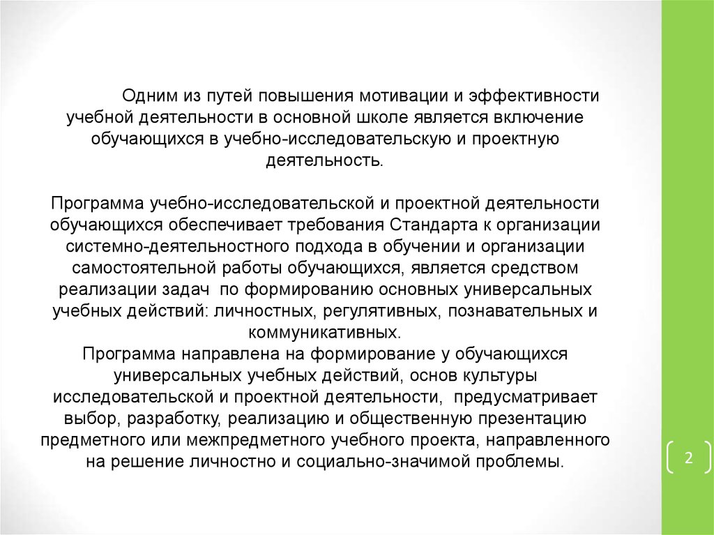 Одним из путей повышения мотивации и эффективностиучебной деятельности в основной школе является включение