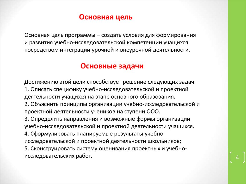 Основная цельОсновная цель программы – создать условия для формирования
