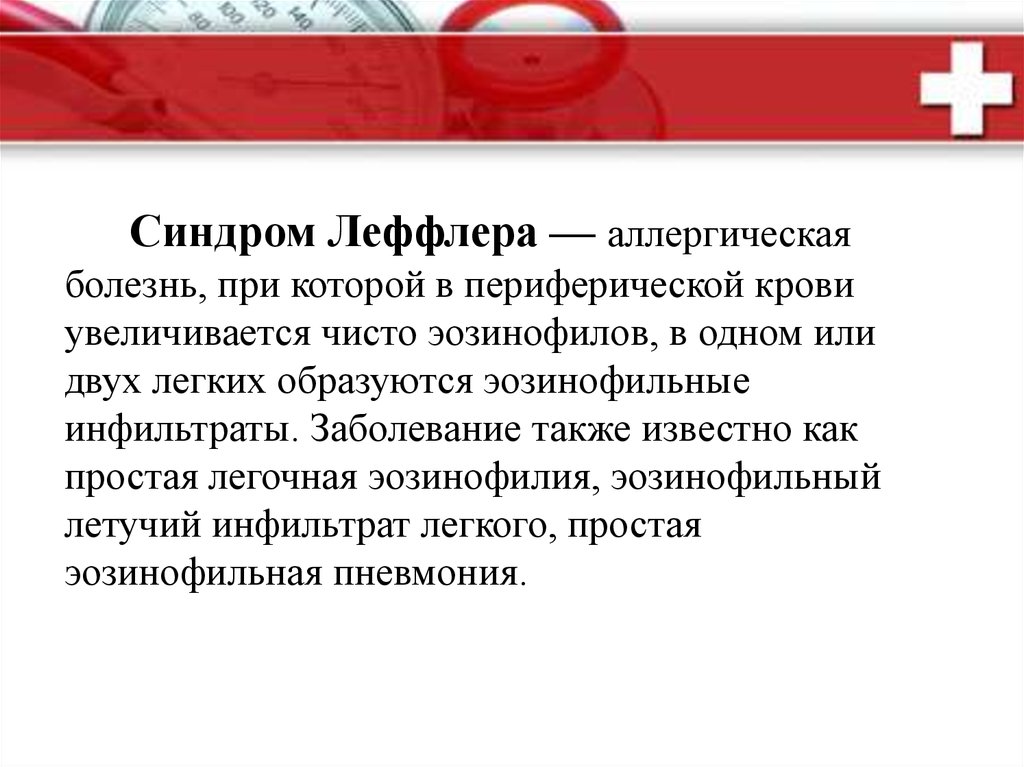 Синдром Леффлера — аллергическаяболезнь, при которой в периферической крови