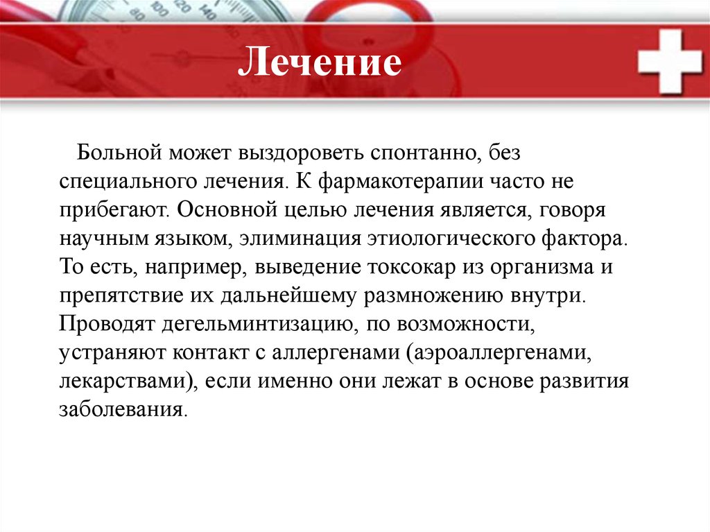 специального лечения. К фармакотерапии часто не