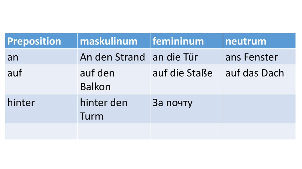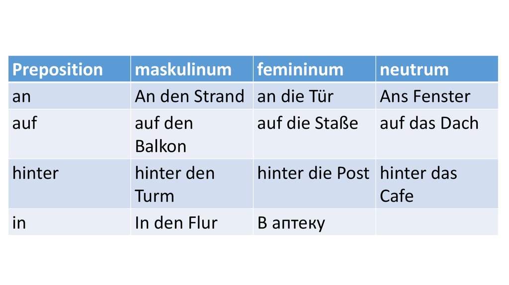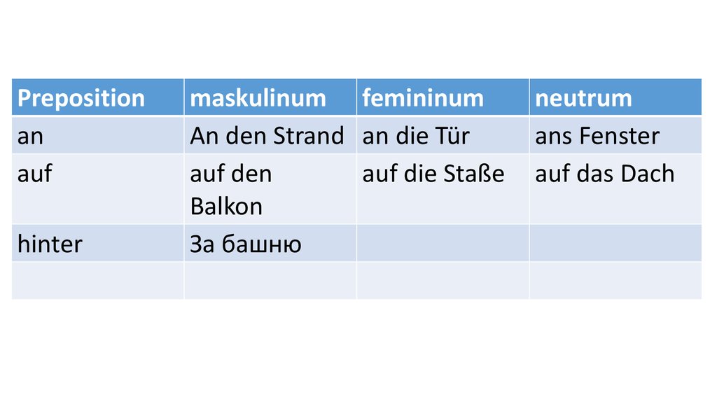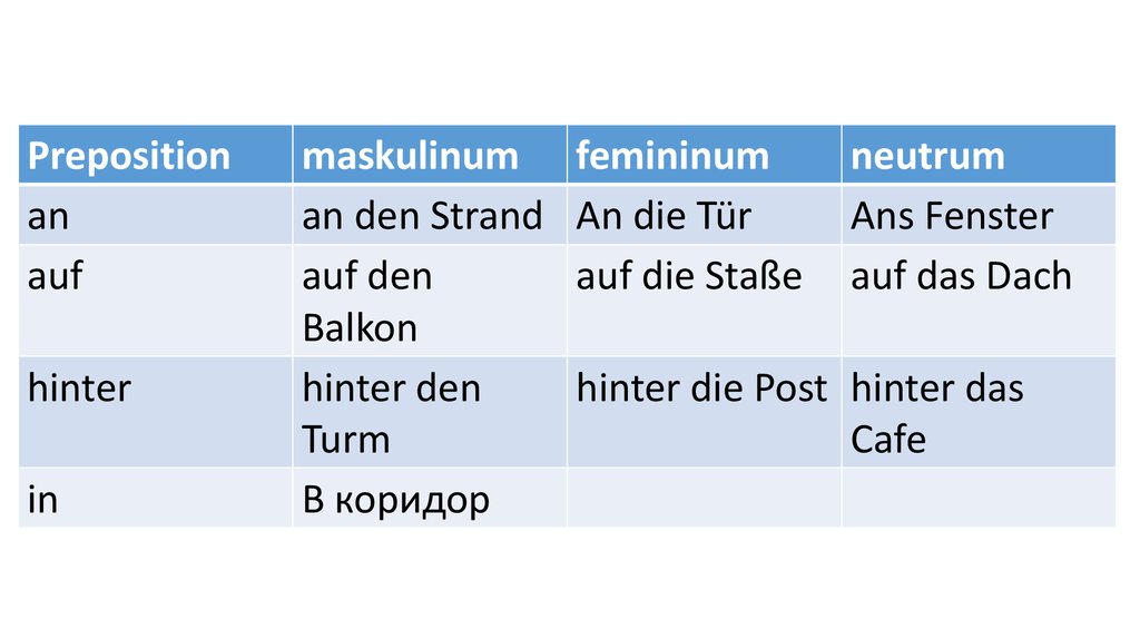 Preposition masculinum femininum neutruman