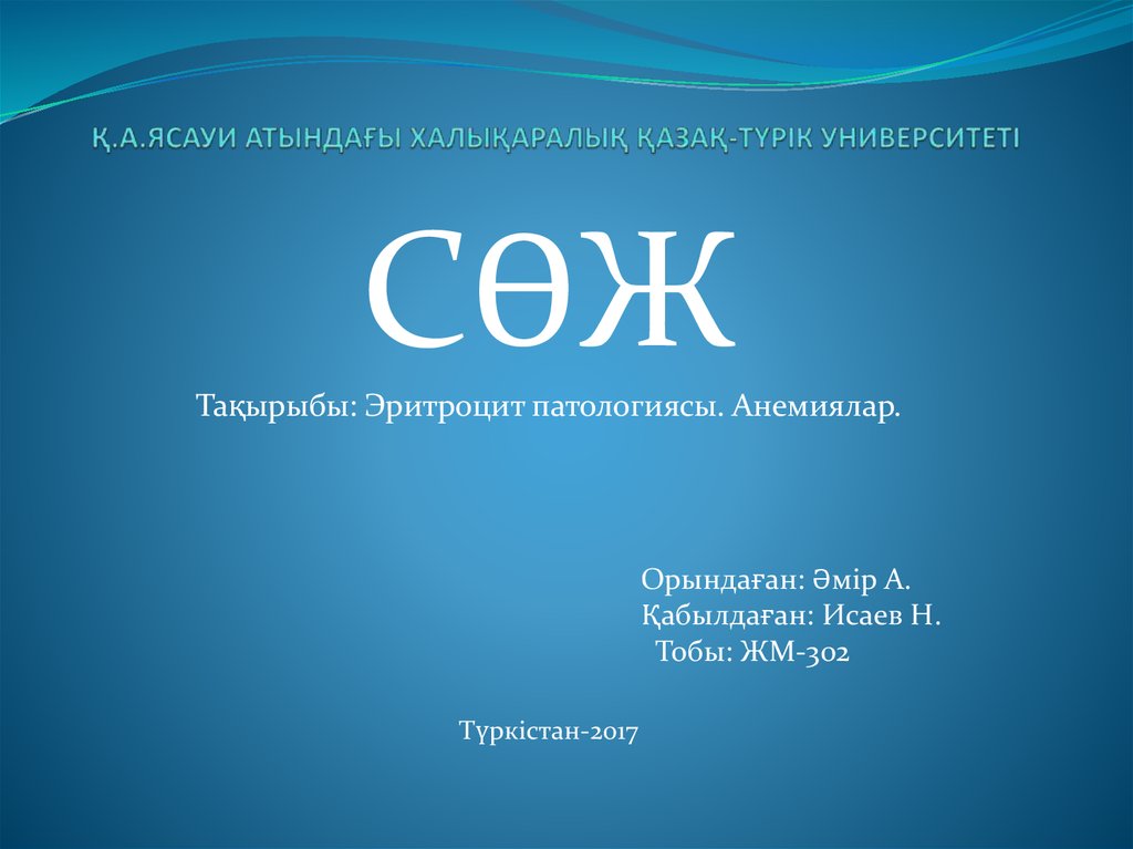 СӨЖТақырыбы: Эритроцит патологиясы. Анемиялар.