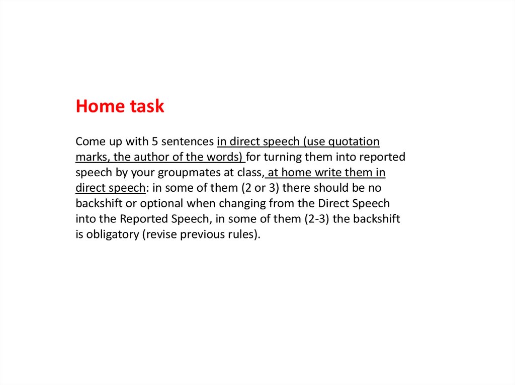 Home taskCome up with 5 sentences in direct speech (use quotation