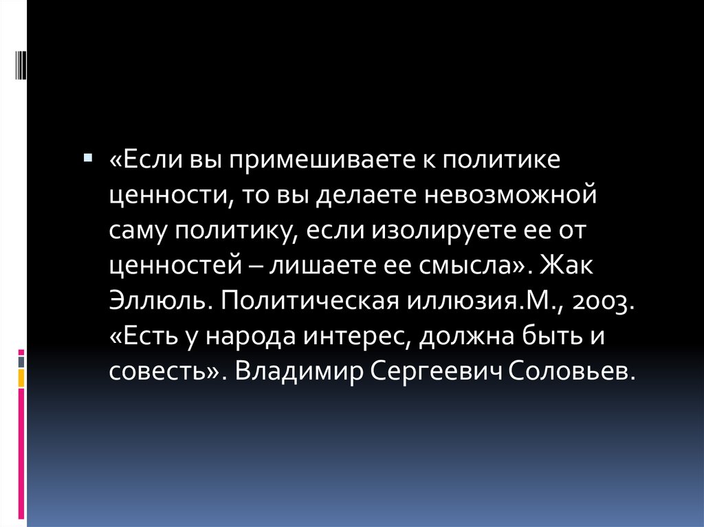 «Если вы примешиваете к политикеценности, то вы делаете невозможной